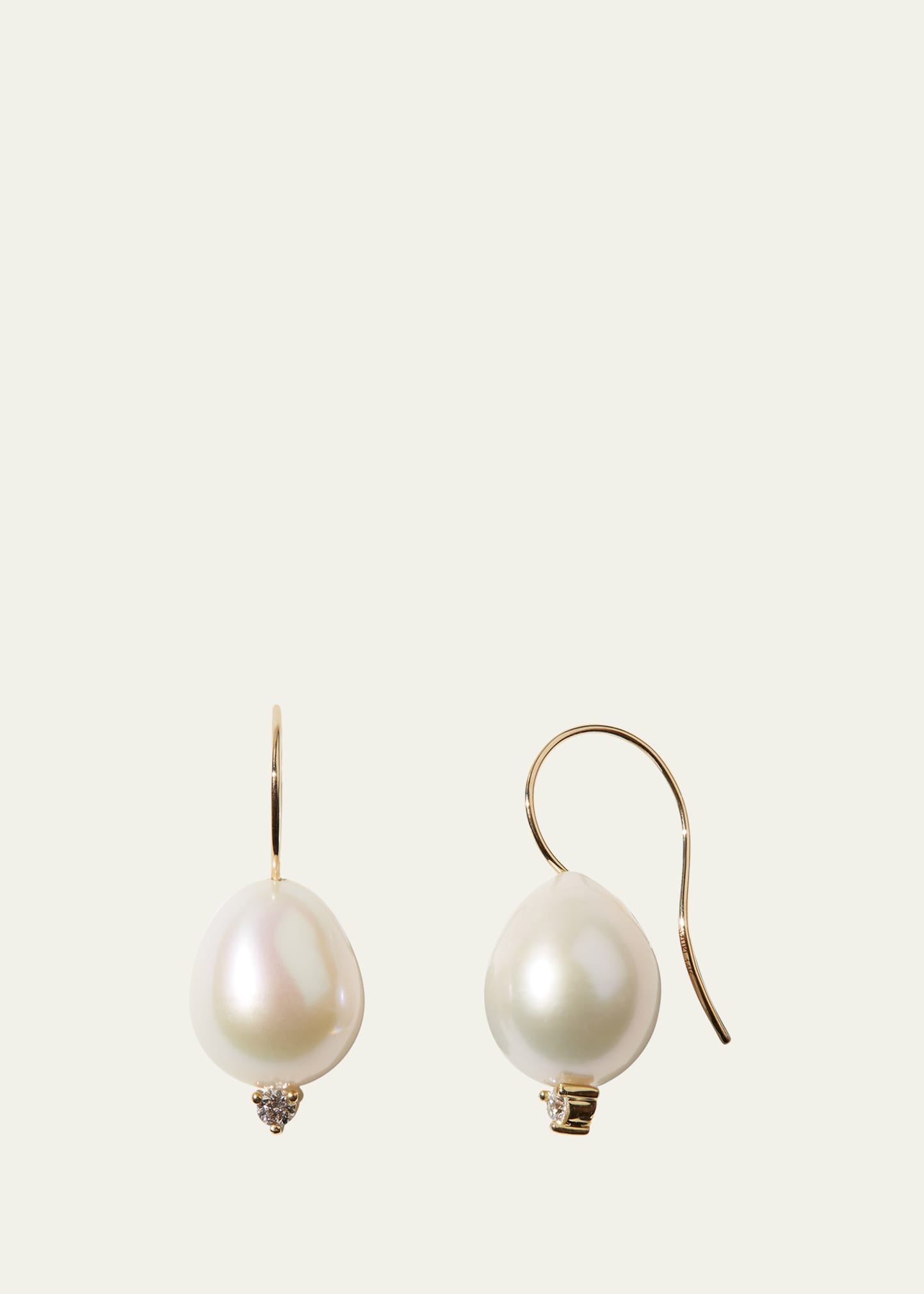 Mizuki drop earrings in 14-karat yellow gold Clip-on backs Hook clasp Natural freshwater pearl; naturally colored Diamond TCW: 0.09ct Imported