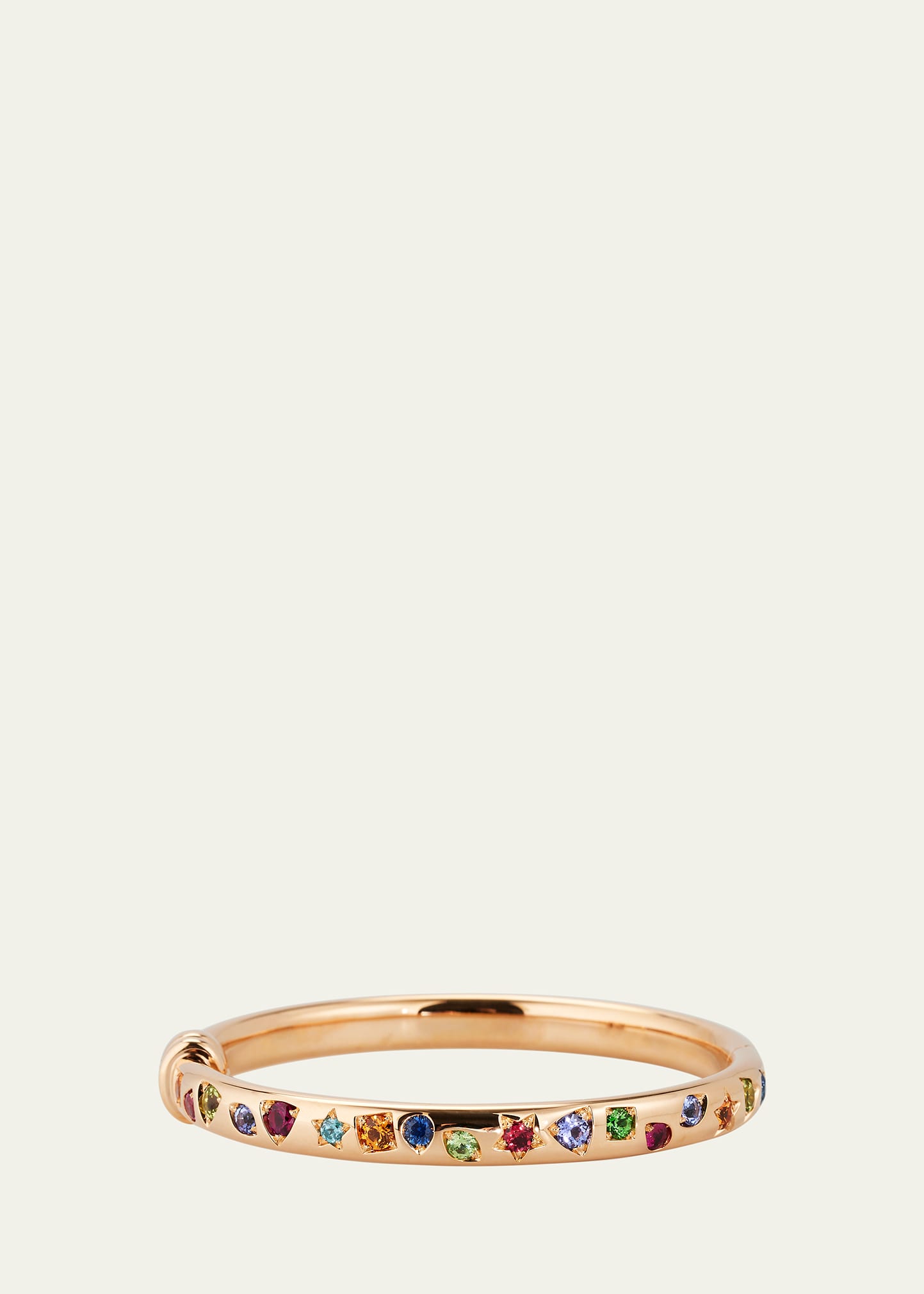 Pomellato bracelet Shiny 18-karat rose gold Amethyst, tsavorite, blue sapphire, red spinel, blue zircon, pink tourmaline, tanzanite and treated orange sapphire Total carat weight: 5.10 Slip-on style Made in Italy