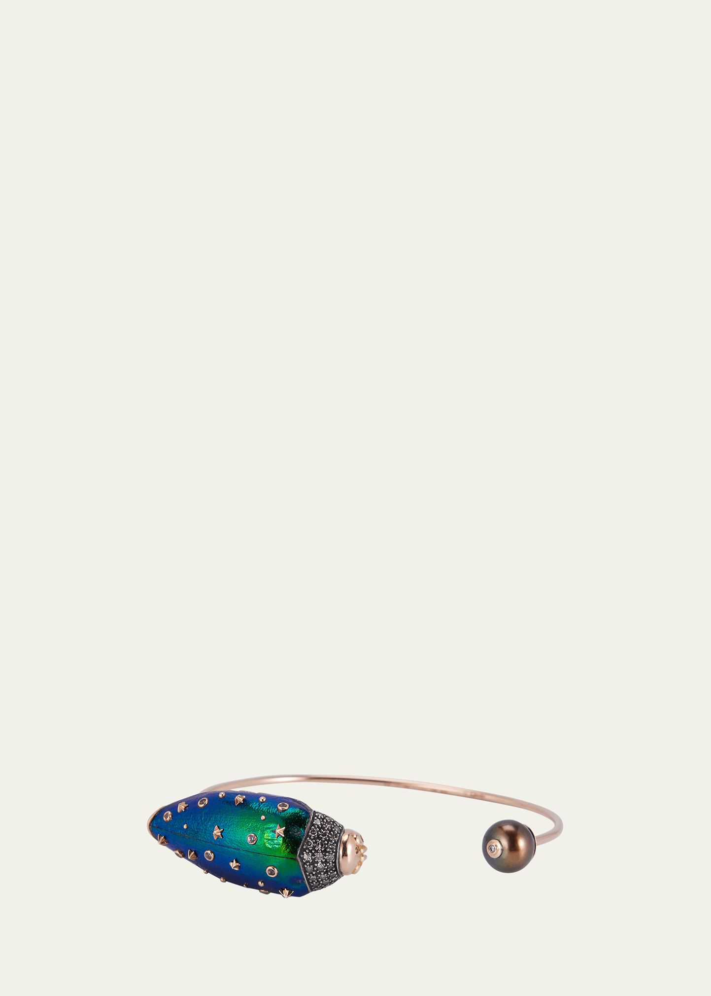 Bibi van der Velden bangle 18-karat rose gold and sterling silver Real scarab wings Amethyst and pink Sapphire gemstones Single Tahitian pearl 0.255 total gemstone carat weight Slip-on style Imported