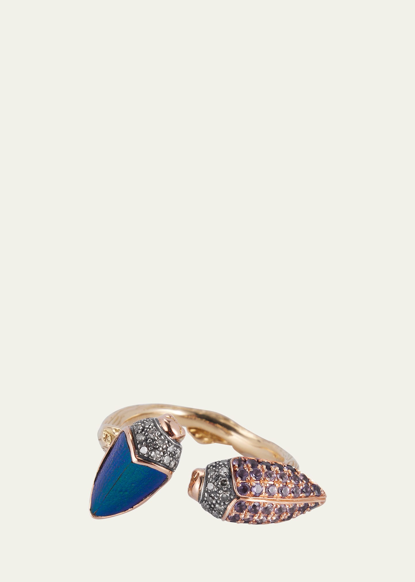 18K Rose Gold Scarab Stackable Ring with Amethyst, Sapphire, and Diamonds