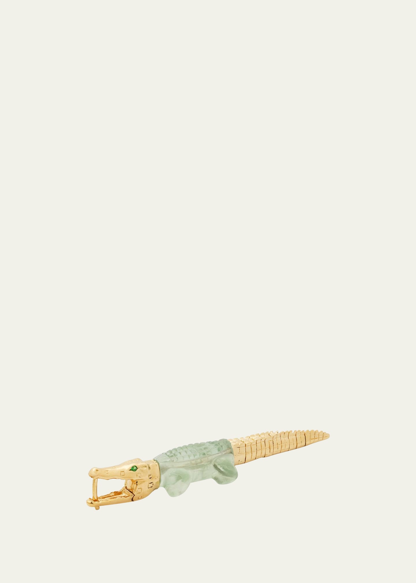 18K Yellow Gold Alligator Bite Earring with Amethyst and Tsavorite