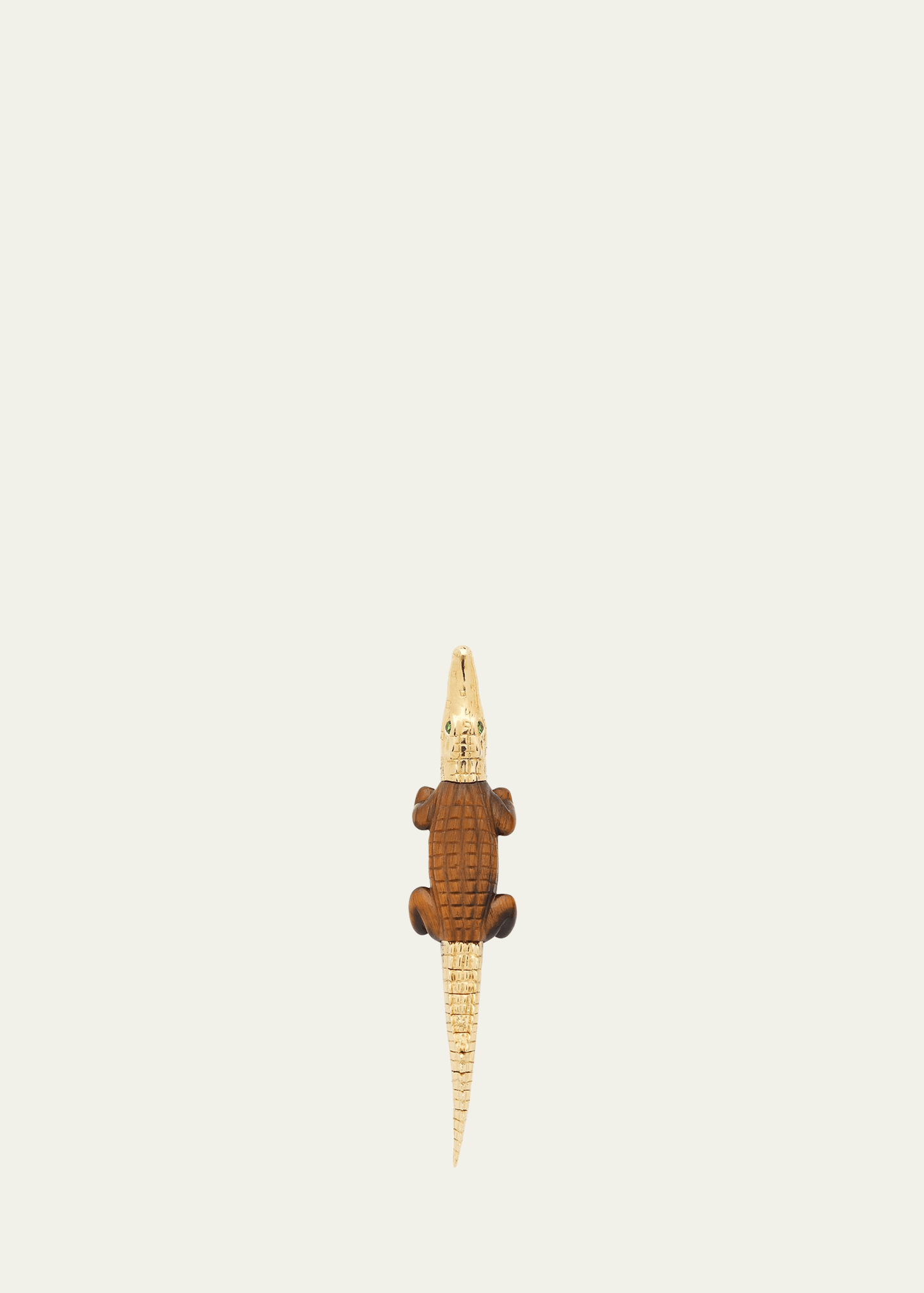 18K Yellow Gold Alligator Bite Earring with Tiger's Eye and Tsavorite