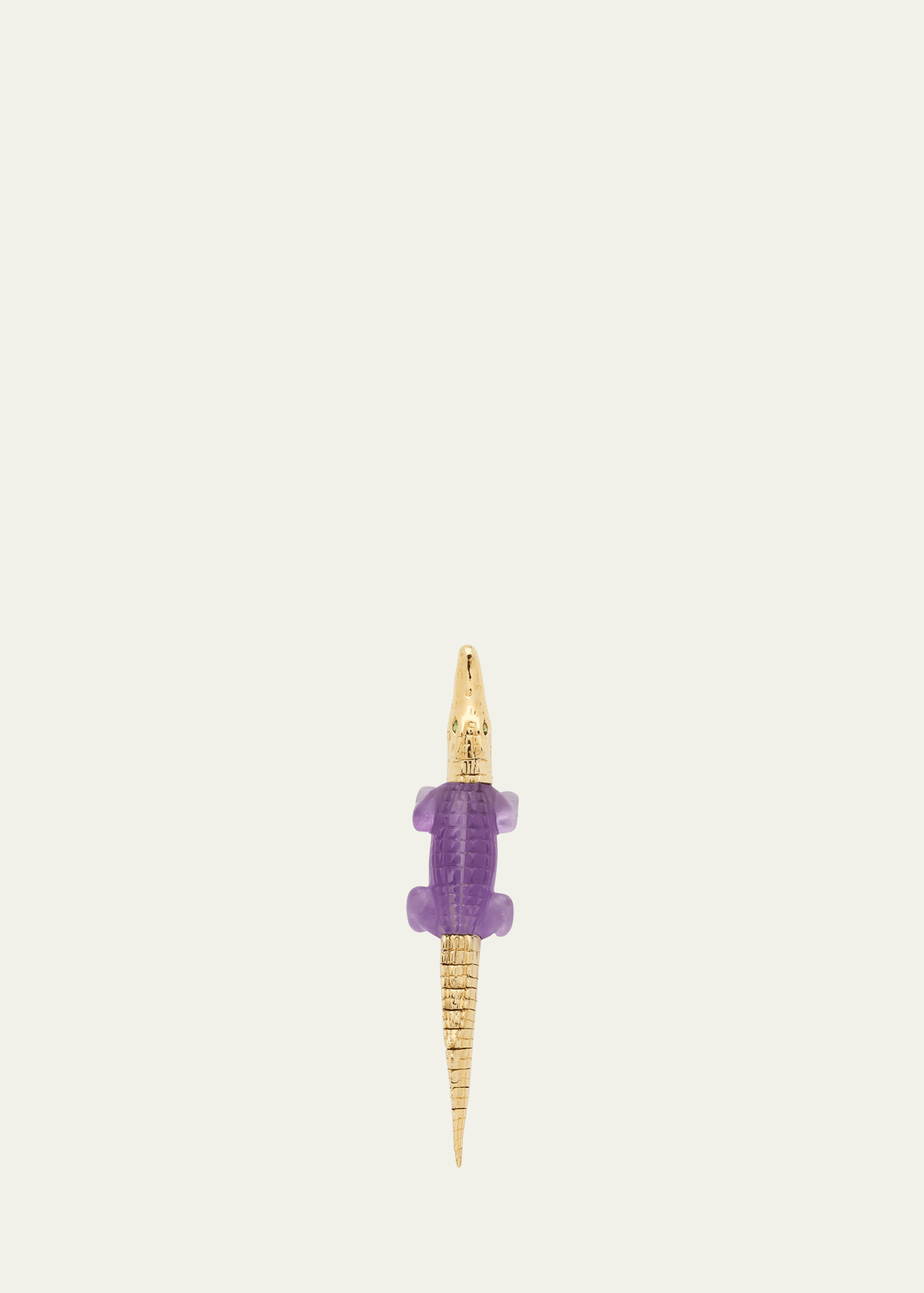 18K Yellow Gold Alligator Bite Earring with Tsavorite and Amethyst