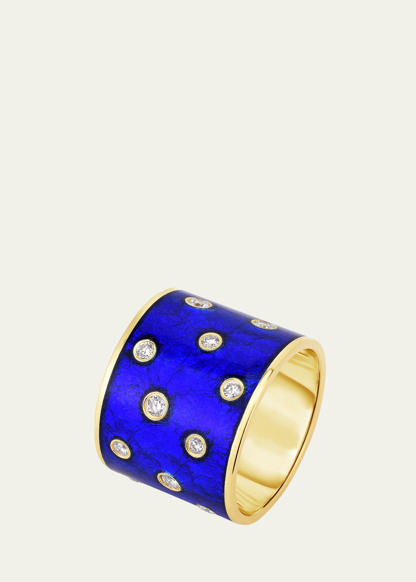 Audrey C. Jewels ring Polished 18-karat solid yellow gold and enamel inlay Bezel-set round G-colorless white diamonds Total carat weight: 0.86 Wipe clean Made in USA