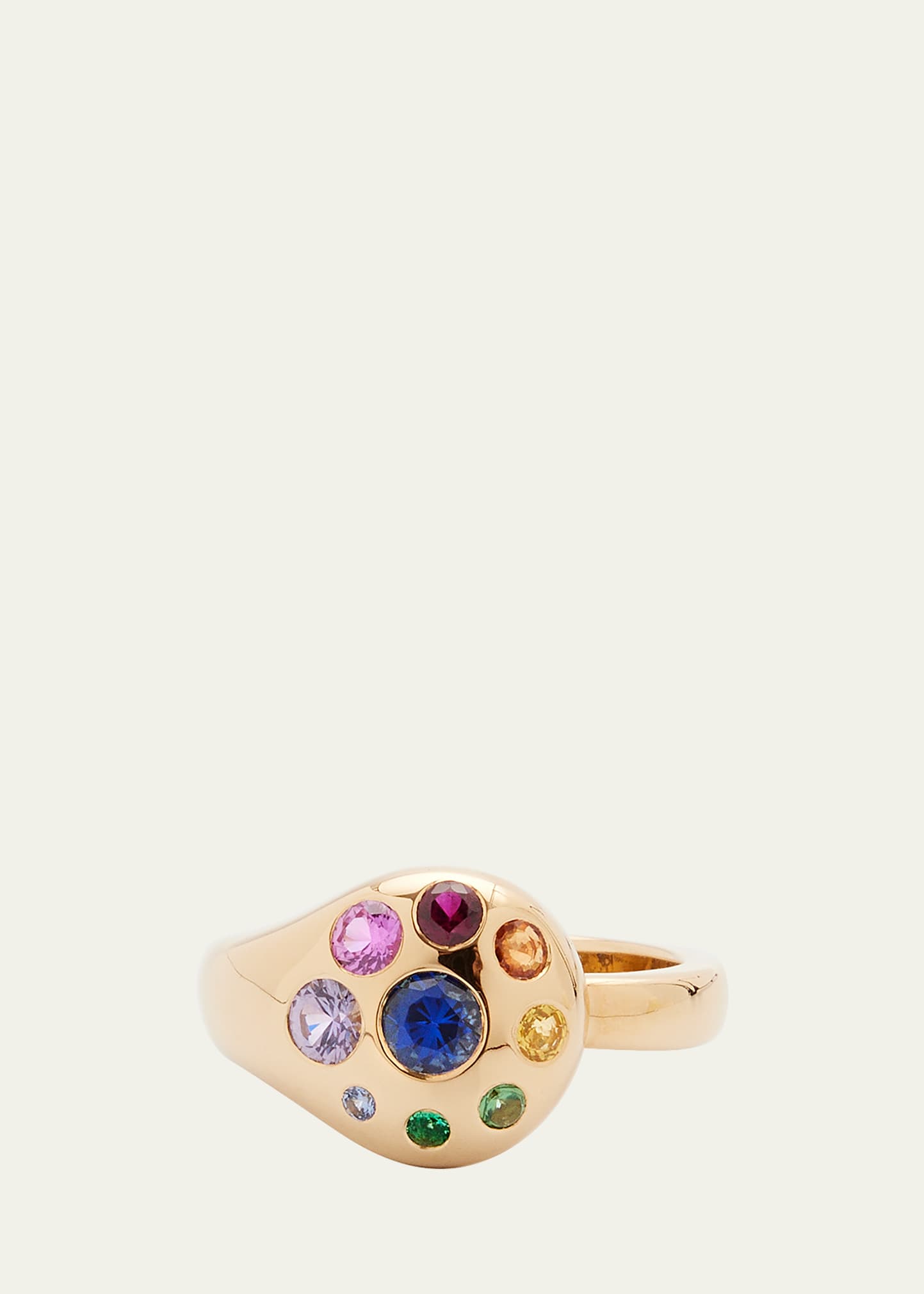 Brent Neale ring 18-karat yellow gold Multihued flush mount emeralds and sapphires Total stone carat weight: 0.97 Made in the USA