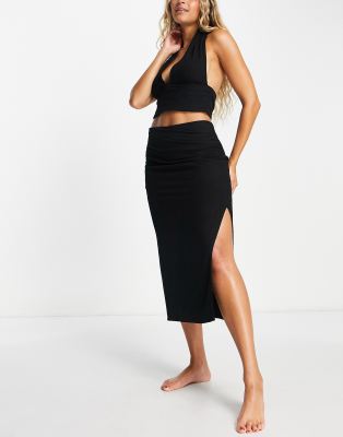 4th & Reckless Lotus linen ruched skirt with split in black - part of a set