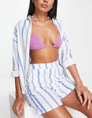 4th & Reckless Mackenzie beach short in blue stripe - part of a set-Multi