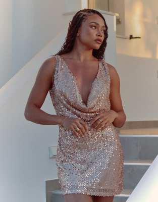4th & Reckless x Loz Vassallo mini tie beaded knit mini beach summer dress in cream-White