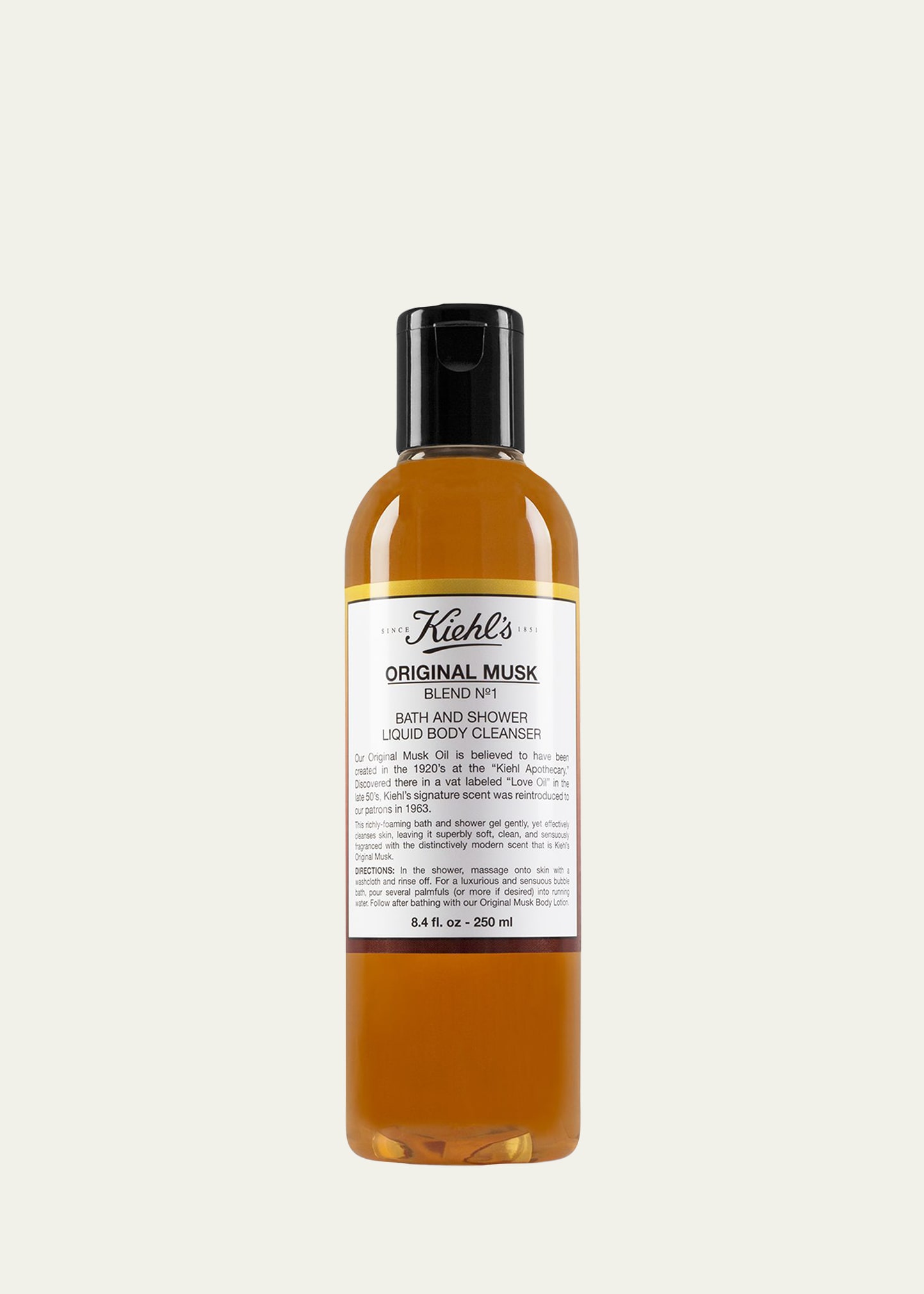 Gel cleanser transforms into a rich, velvety foam to wash and soften skin. Delicately perfumed with the signature Musk scent. Enriched with glycerin, sweet almond fruit extract, and Sodium PCA. Unique formula imparts a soft, supple feel post-shower or bath. Not tested on animals. 8.4 fl. oz./ 250 m L.