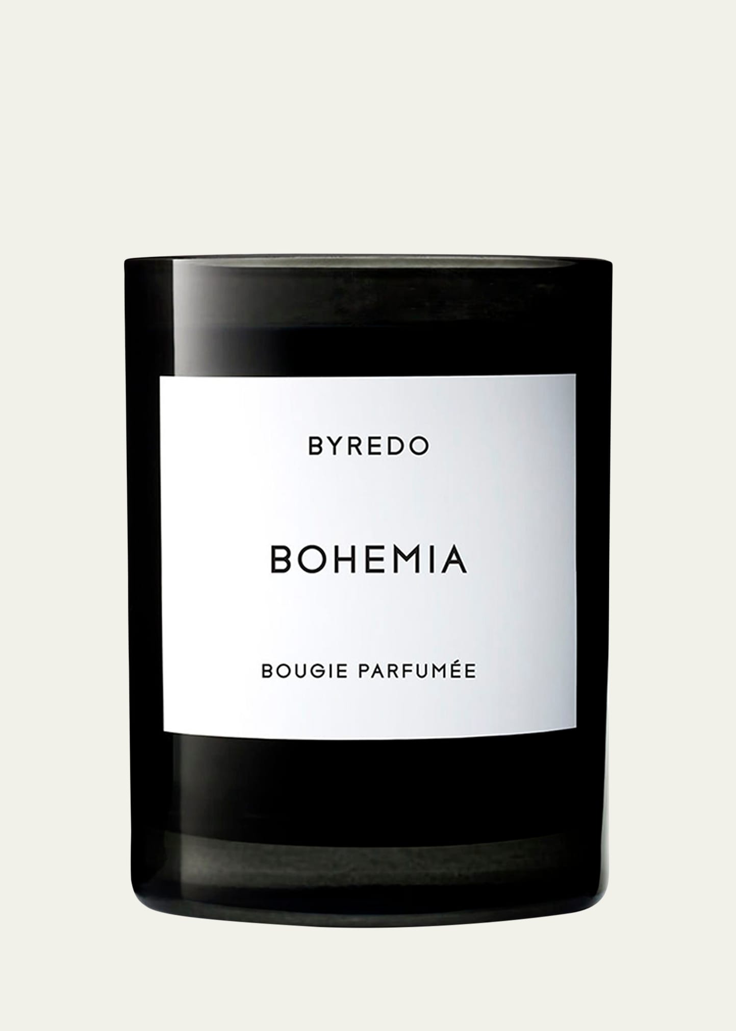 Byredo 8.5 oz. Bohemia Bougie Parfume Scented Candle A softly spiced fragrance defined by its smoky character of opopanax blended with soft vanilla, this candle burns for 60 hours. INGREDIENTS Top: Opopanax, rum Heart: Geranium, Labdanum, Rosemary Base: Vanilla, Sandalwood, Moss 240g Designer About Byredo Fragrances: BYREDO is a modern European luxury house founded in 2006 by Ben Gorham. In contrast to Scandinavian esthetics, BYREDO carries clear ethnic influences from Ben's Indian backg.
