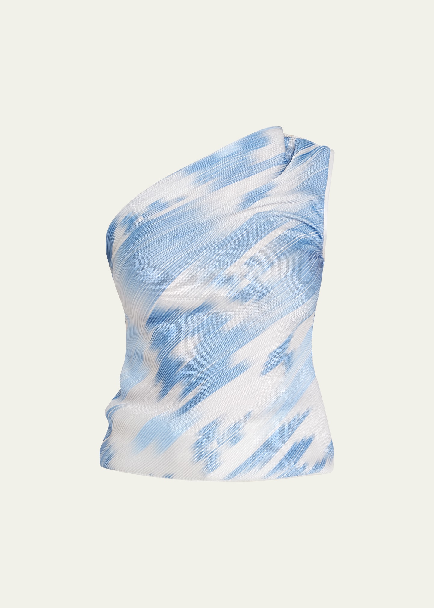 Giorgio Armani plisse blouse featuring an abstrcat print One-shoulder neckline Sleeveless Slim fit Invisible side zip Polyester/polyamide Made in Italy