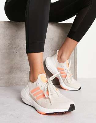 Shoes by adidas performance Jog on Low-profile design Lace-up fastening Sock-like cuff Signature adidas branding Boost midsole provides responsive, energy-returning cushioning Stretchweb outsole with Continental Rubber for durability Textured grip tread