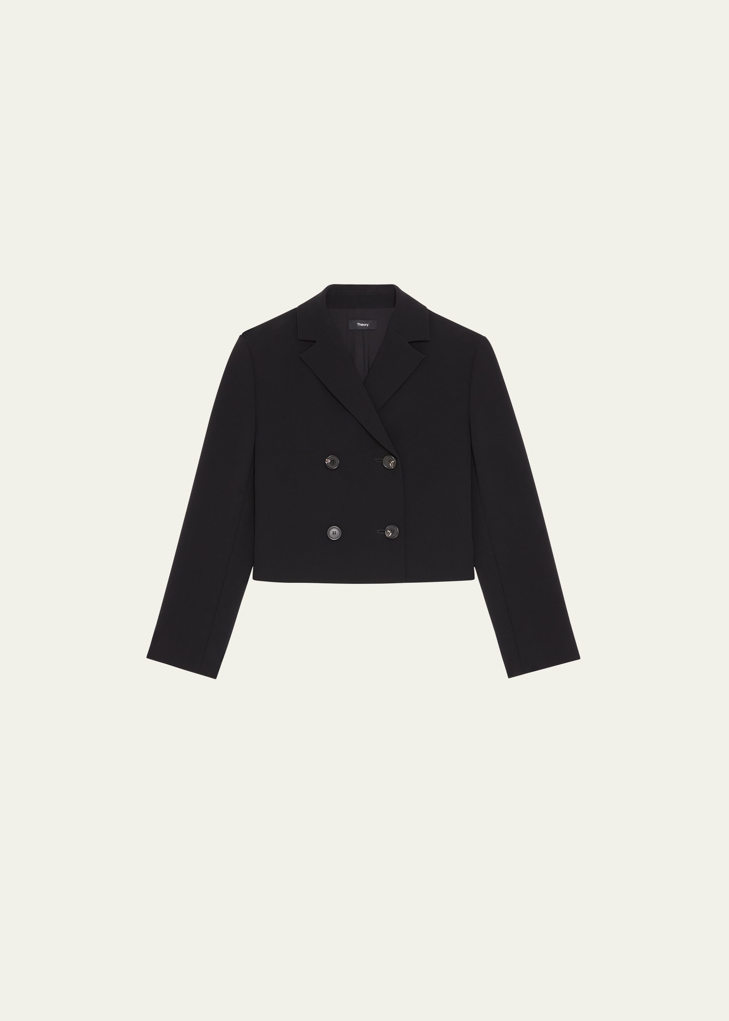 Theory jacket crafted from Admiral Crepe Notched lapels Long sleeves Double-breasted front Shrunken fit Cropped hem Triacetate/polyester Imported