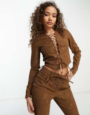 Tops by AFRM Part of a co-ord set Pants sold separately Lace-up front Long sleeves Cropped length Slim fit