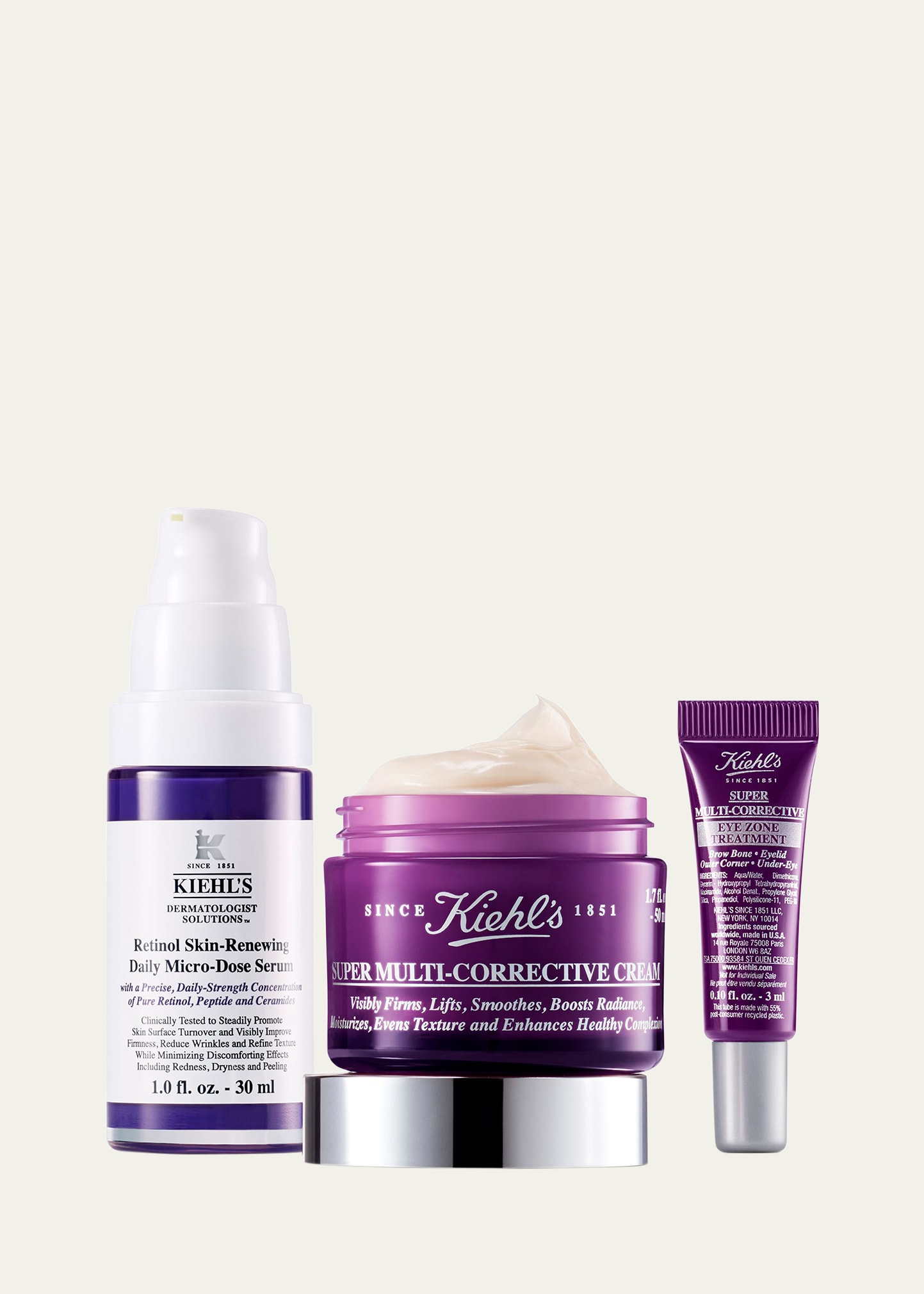 Retinol Skin-Renewing Daily Micro-Dose Serum, 1 oz./ 30 m L Super Multi-Corrective Cream, 1.7 oz./ 50 m L Super Multi Corrective Eye Zone Treatment, 3 m L Key Ingredients: Pure Retinol: Steadily accelerates skin's surface turnover to bring new, fresh skin to the surface- helping address visible signs of aging. Phytomimetic Vitamin A: Helps visibly diminish wrinkles and visibly renew skin's surface for a smoother, more refined appearance. Collagen Peptide: Helps visibly firm sk.