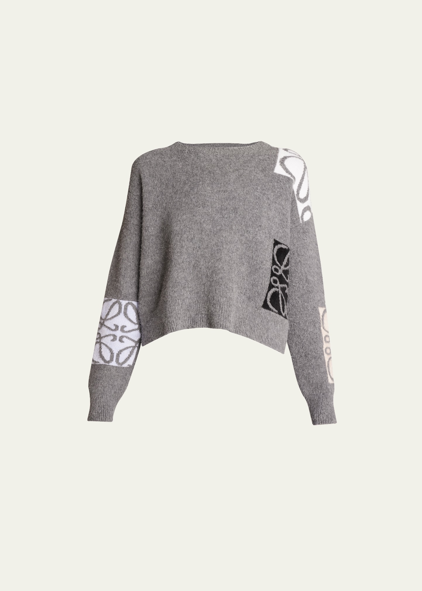 Loewe wool sweater features intarsia-knit anagram details throughout High neckline Long sleeves Ribbed trim Hip length Pullover style Relaxed fit Wool/viscose/nylon Made in Italy
