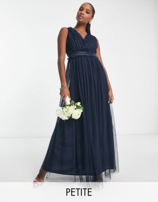 Anaya Petite Bridesmaid v neck ruffle waist maxi dress in sage green