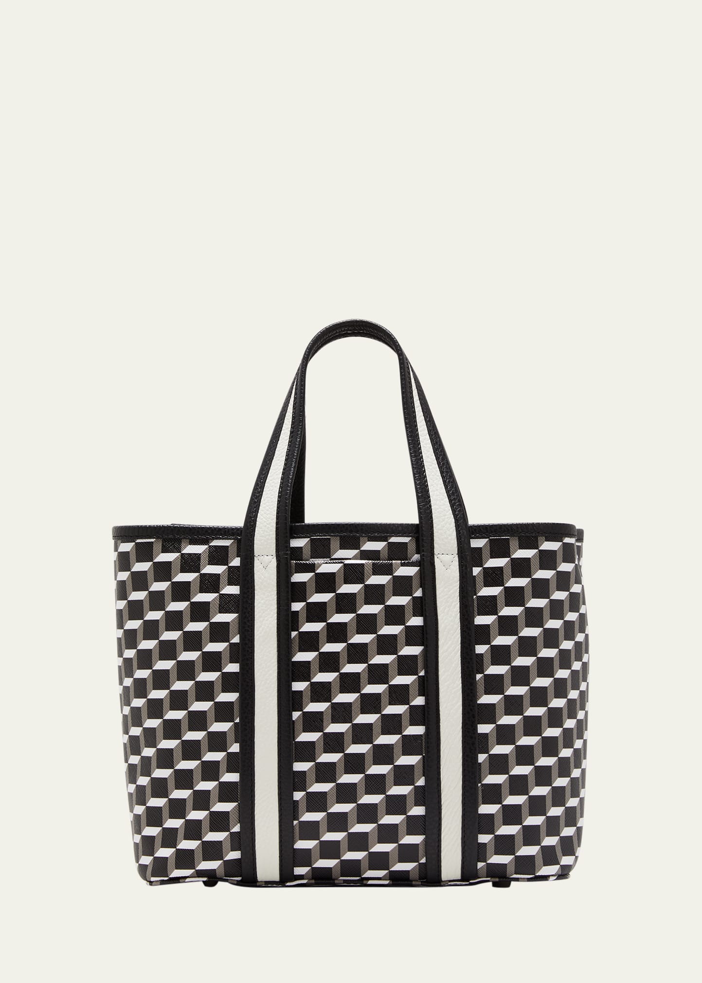 Pierre Hardy "Archi" tote bag in polyester and calf leather Features the label's iconic 3-dimensional cubes Flat top handles Detachable, adjustable shouler strap Open top Interior, drawstring pouch and one zip pocket Approx. 8"H x 10.2"W x 4"D Made in Morocco