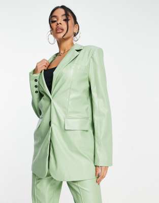Aria Cove leather look oversized blazer in sage - part of a set-Green