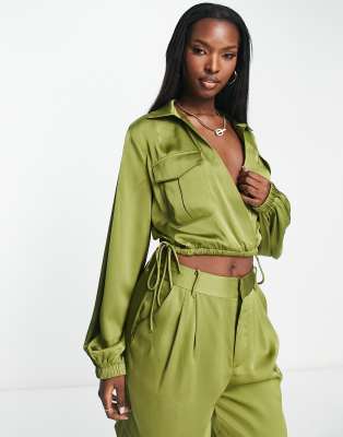 Tops by Aria Cove Part of a co-ord set Sweatpants sold separately Spread collar Wrap front Chest pockets Tie details Regular fit