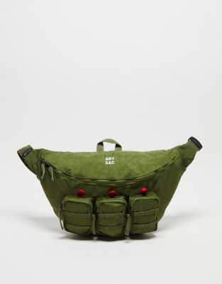 ARTSAC jaspar triple pocket sling cross body bag in khaki-Green
