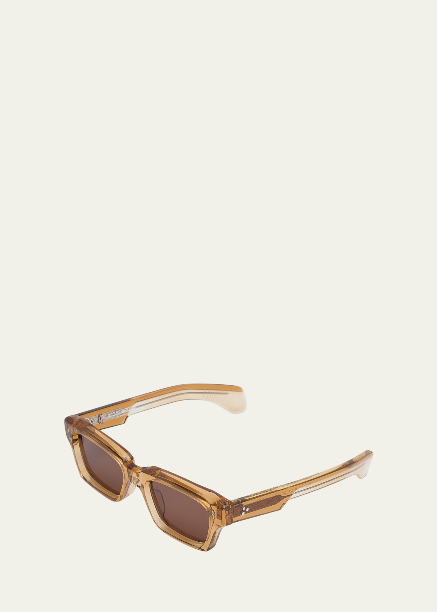 Jacques Marie Mage "Ashcroft" beveled rectangle sunglasses in acetate Solid lenses Saddle nose bridge Logo on temples Thin, tapered arms 100% UVA/UVB protection Made in Japan