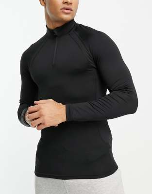 ASOS 4505 muscle fit training long sleeve base T-shirt with 1/4 zip-Black