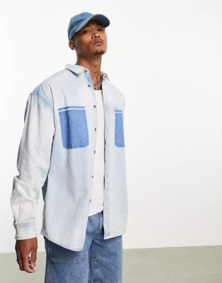 ASOS DESIGN 90s oversized denim shirt with removed pockts in bleach wash-Blue