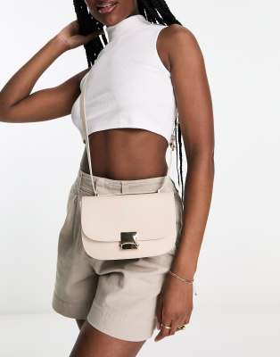 ASOS DESIGN crossbody with gold hardware detailing in stone-Neutral