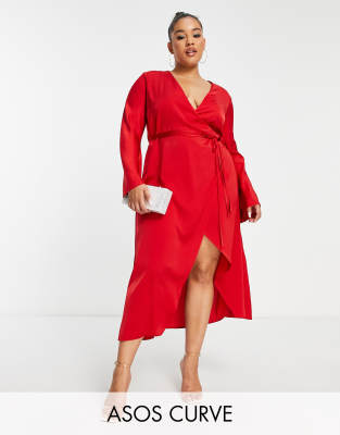 Dresses by ASOS Curve A round of applause for the dress Plunge neck Wrap front Long sleeves Belted waist Regular fit