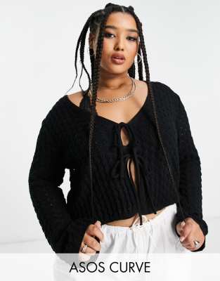Sweaters & Cardigans by ASOS Curve The transitional staple V-neck Long sleeves Tie front Regular fit