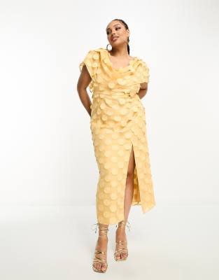 ASOS DESIGN Curve exclusive textured cowl neck maxi dress with shoulder detail in pale yellow