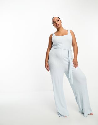 ASOS DESIGN Curve lounge super soft ribbed square neck jumpsuit in blue