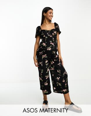 Maternity by ASOS Maternity Co-ordinating made easy Sweetheart neck Button front Puff sleeves Cropped length Regular fit Designed to fit you from bump to baby