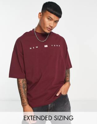 ASOS DESIGN oversized t-shirt in burgundy with New York City print-Red