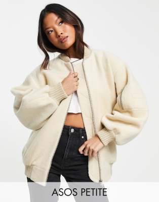 Coats & Jackets by ASOS Petite Low-key layering Baseball collar Zip fastening Zip pocket to sleeve Ribbed trim Regular fit