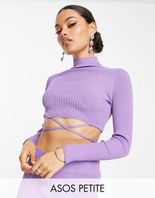 Sweaters & Cardigans by ASOS Petite Part of a co-ord set Skirt sold separately High neck Wraparound, tie waist Cropped length Slim fit