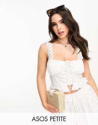 Tops by ASOS Petite Summer, styled Square neck Lace-up front Ruffle hem Regular fit