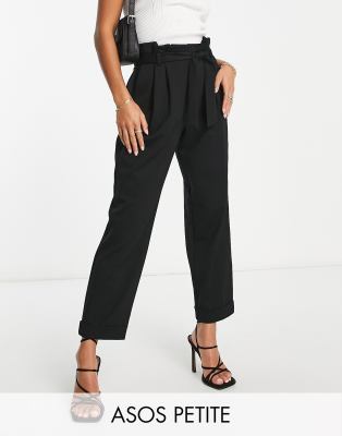 ASOS DESIGN Petite ponte peg pants with paperbag tie waist in black