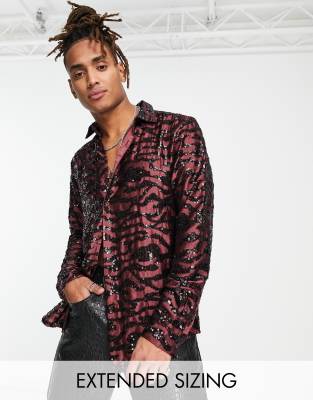 ASOS DESIGN Premium embellished shirt with tiger sequin design in brown
