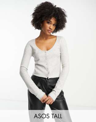 ASOS DESIGN scoop neck cardigan with iron on embellishment in pink