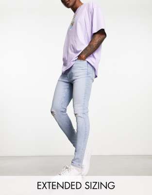ASOS DESIGN spray on jeans with power stretch and knee rips in light wash blue