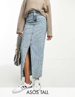 Skirts by ASOS Tall Waist-down dressing High rise Belt loops Five pockets Front slit Regular fit