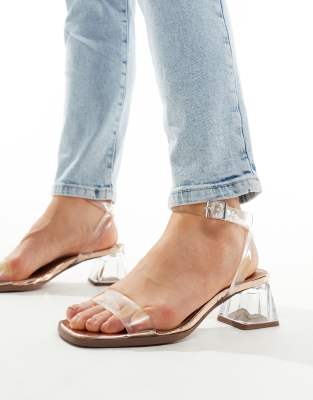 ASOS DESIGN Wide Fit Hopeful block heeled sandals in clear and rose gold