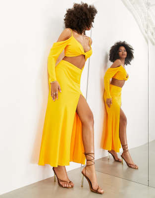 Skirts by ASOS EDITION *insert heart-eyes emoji here* High rise Zip-side closure Thigh-high slit Regular fit