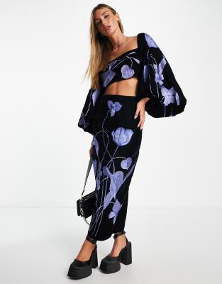 ASOS EDITION velvet midi pencil skirt in large floral embroidery in black