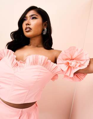 Tops by ASOS Luxe Part of a co-ord set Shorts sold separately Sweetheart neck Off-shoulder style Ruffle details Back zip closure Regular fit