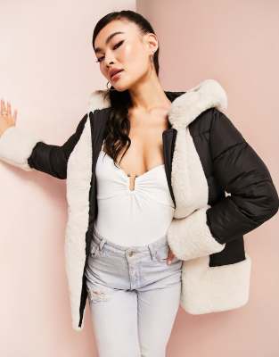 Coats & Jackets by ASOS Luxe That new-coat feeling Fixed hood Zip closure Belted waist Faux-fur trims Regular fit