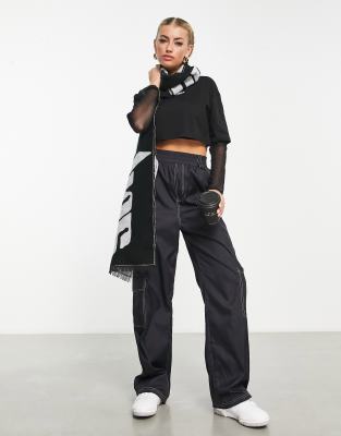 ASOS Weekend Collective parachute cargo pants with contrast top stitch in black