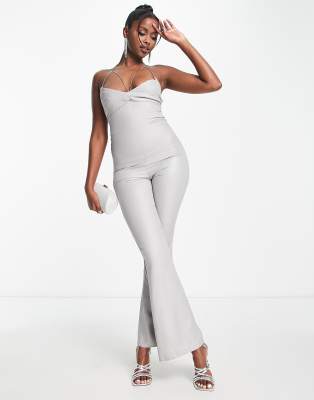 Romper by AsYou Exclusive to ASOS Halterneck style Rhinestone embellishment Strappy, tie back Skinny leg Body-conscious fit